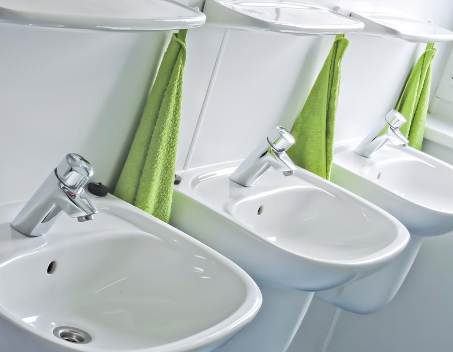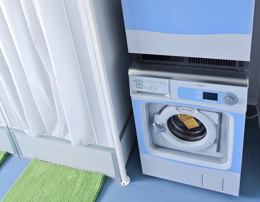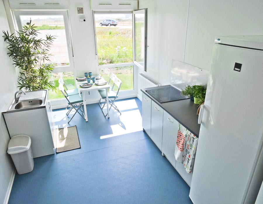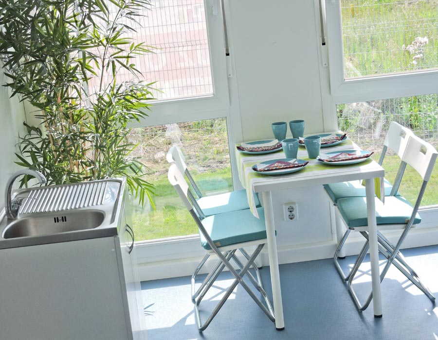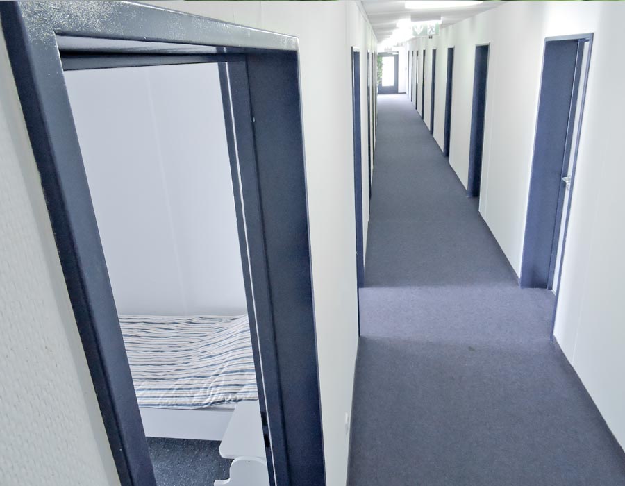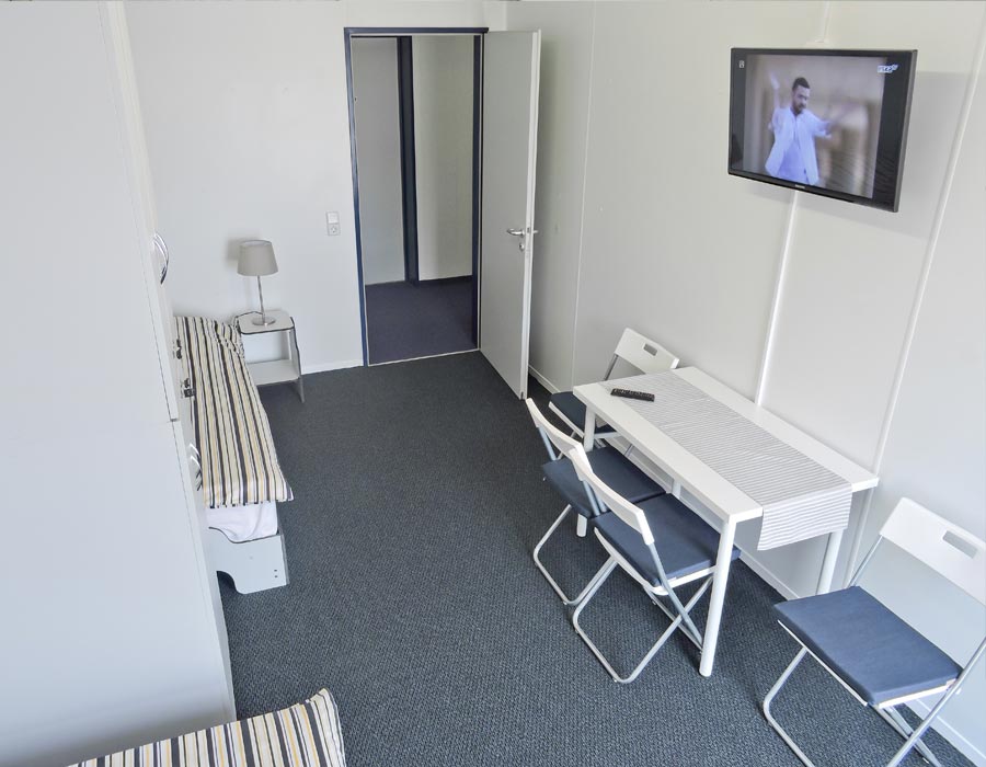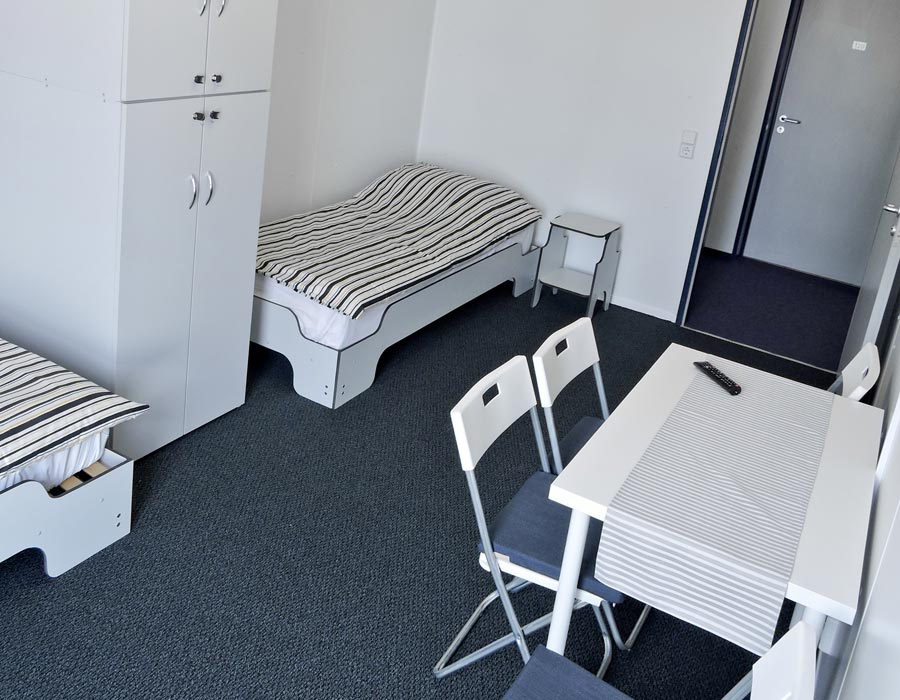 pokoje w standardzie PODSTAWOWYM, wyposażone w łóżka z pościelą, szafki, stoły, krzesła oraz PODWYŻSZONYM