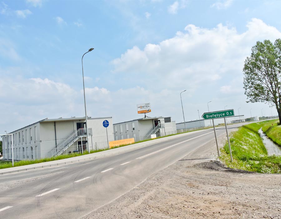 Łatwy dojazd, bliskość zakładu VW, bezpłatne Wi-fi i parking, całodobowy dozór obiektu, w pobliżu sklep spożywczo-przemysłowy.